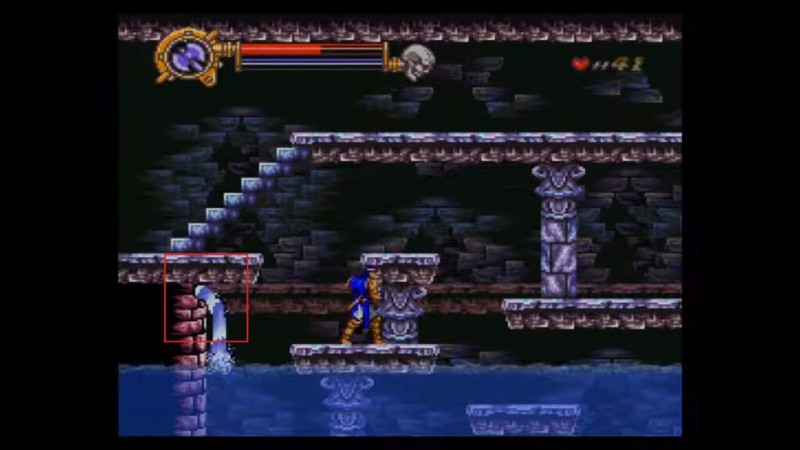 穴に落ちないでください。これにより、別のステージ 4 に移動し、彼女を救出することができなくなります。このセクションの直後に、ろうそくがたくさんある部屋に入ります。最後のろうそくにはキーのサブウェポンがあります。マリア救出とアネット救出ステージへのアクセスに必要となりますので、必ず入手してください。残念ながら、サブウェポンなしでボスと戦わなければならず、ステージ 5 ALT に到達するまで他のサブウェポンをスキップする必要があります。