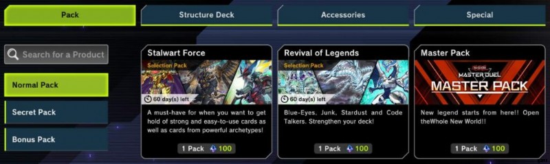 ショップには 3 つのノーマル パックが用意されています。2 つの時限パックとマスター パックです。マスター パックにはすべてのカードがあり、欲しいものを手に入れることは事実上不可能なので、決してマスター パックから購入しないでください。