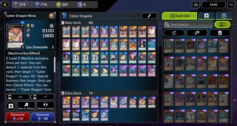 その質問に対する最初の答えは「マスターパックではない」です。 2 つ目は、カード自体によって回答されます。サイバードラゴンデッキをゼロから作りたいとしましょう。どこから始めればよいですか?そのデッキのカード、この場合はサイバードラゴン・ノヴァを探しましょう。選択したカードの下部に「入手方法」というタイトルの便利なボタンがあり、どのパックにそのカードがあるかがわかります。