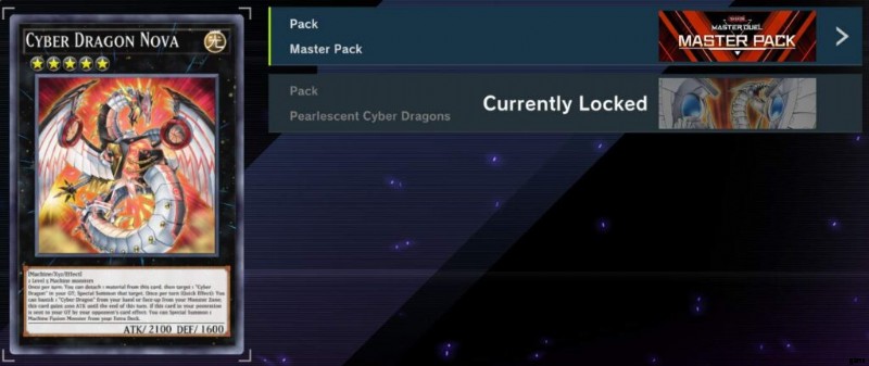 ご覧のとおり、Pearlescent Cyber Dragons Secret PackからCyber Dragon Novaを入手できます.シークレット パックのセクションで述べたように、シークレット パックには特定のアーキタイプのすべてのカードが含まれています。このシークレット パックからサイバー ドラゴン関連のカードをすべて入手できることがわかったので、ロックを解除するだけです。