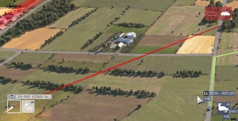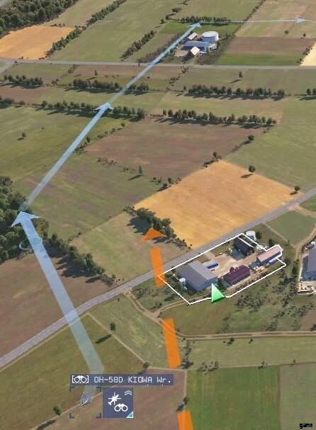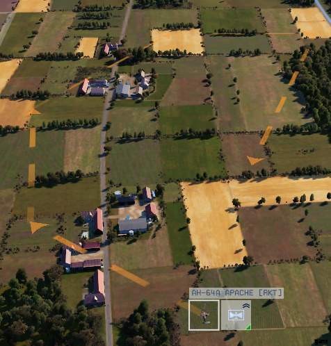 下の画像が示すように、Shift キーを押しながら偵察ヘリに複数の移動命令を与えることで、指定された順序で複数のポイントを巡回させることができます。