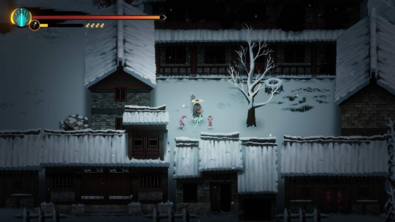 入るとこんな感じ。このシーンは、入植地に入って最初に左折したときに得たものですが、このゲームのレベルは半ランダムなので、特定のパスの選択肢を覚えても意味がありません.