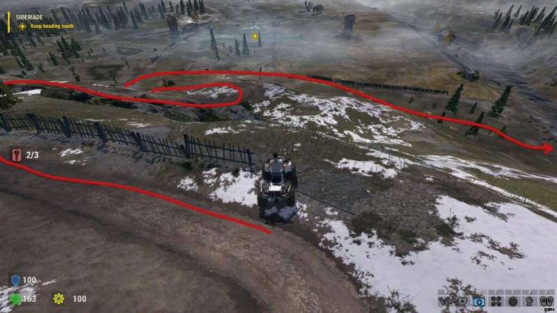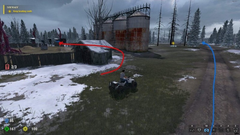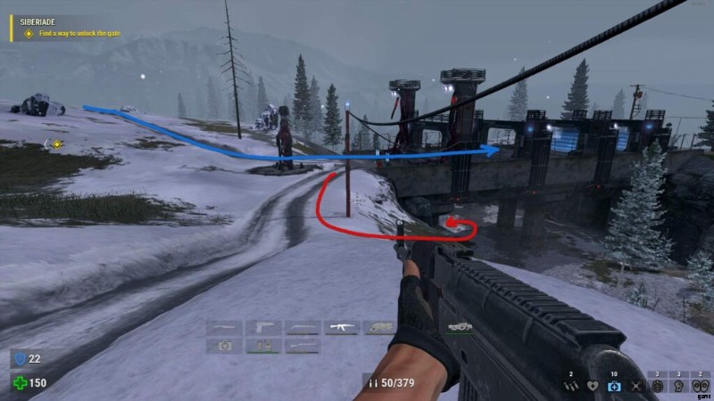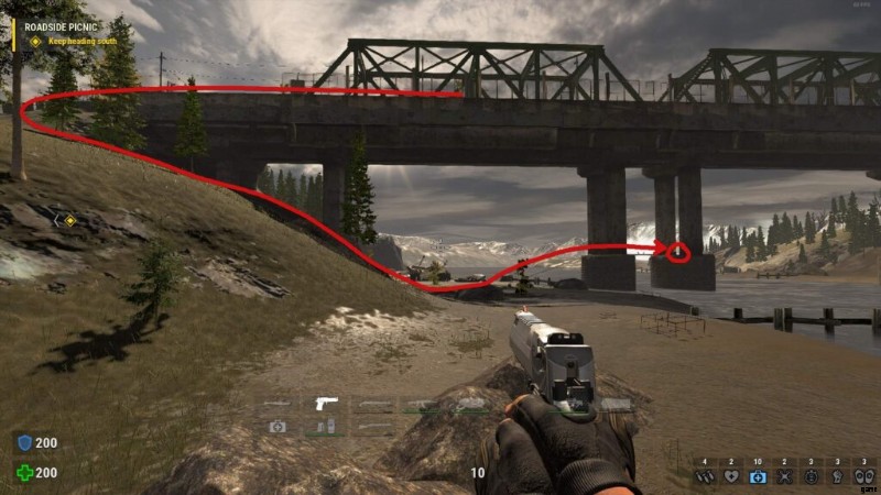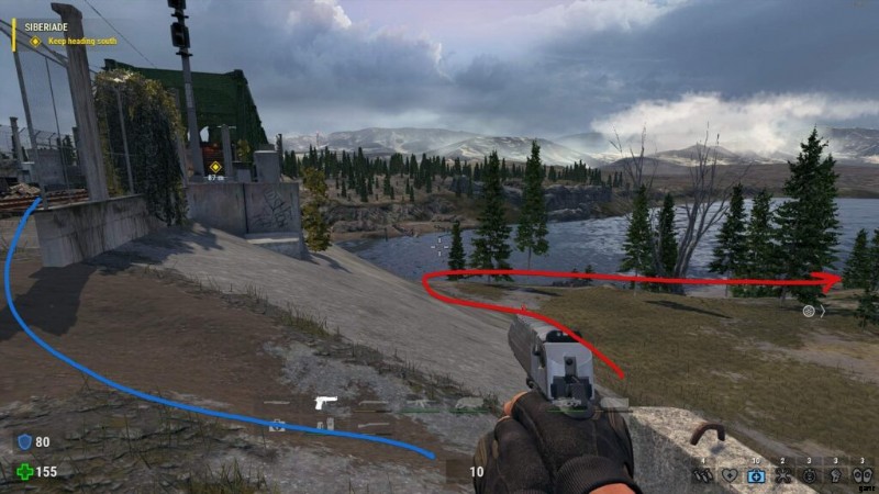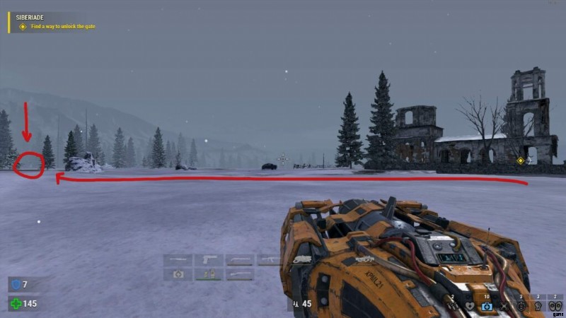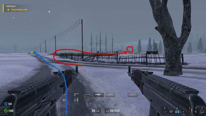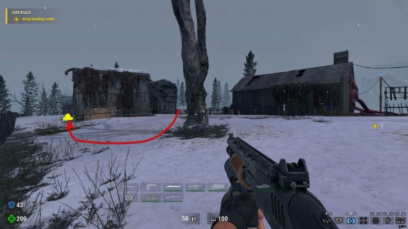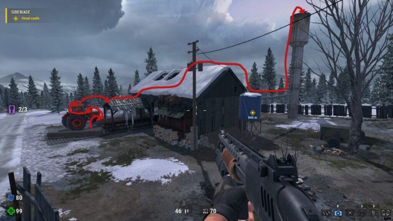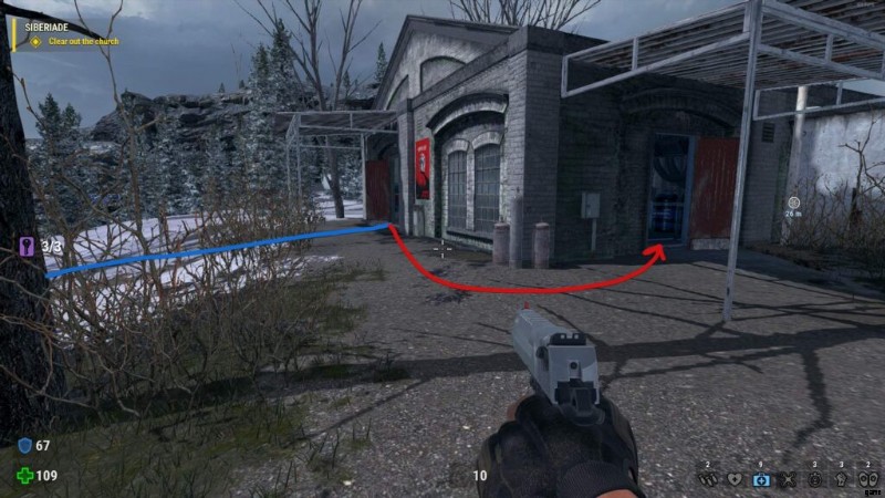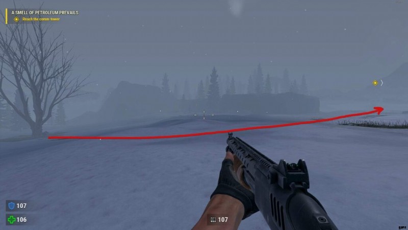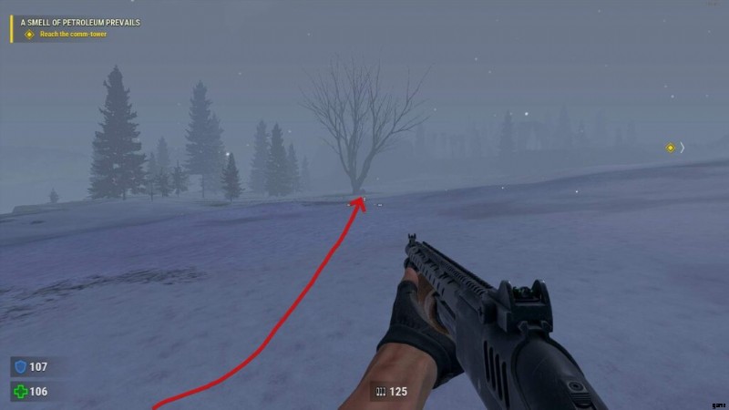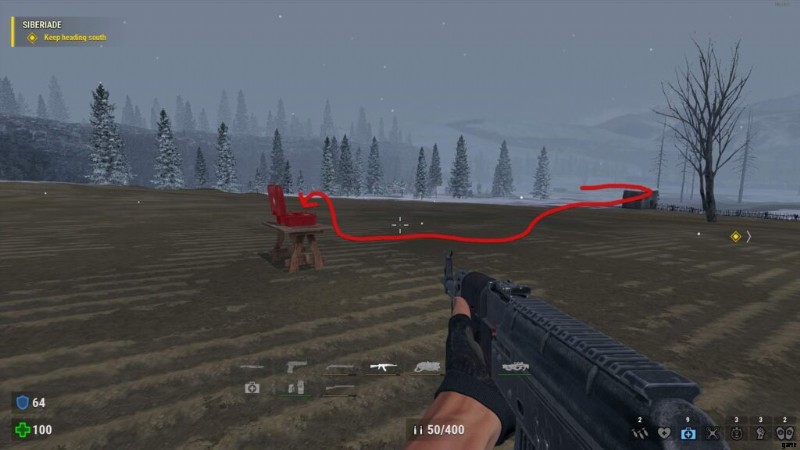 Back to the fork, a bit towards the objective by the right side you can find an empty field with a giant medkit. And of course it’s another trap.