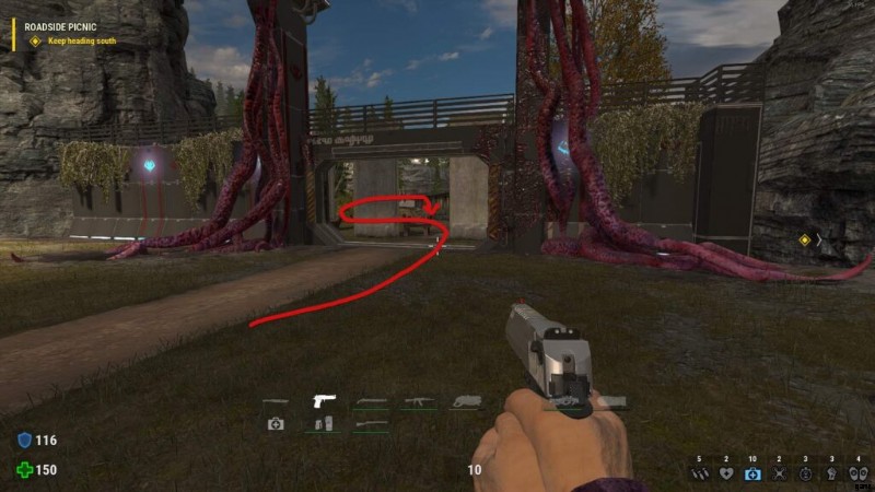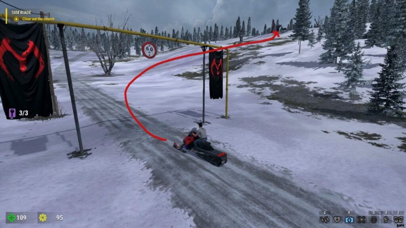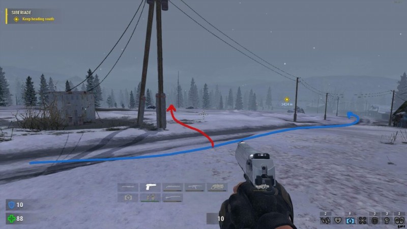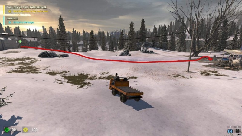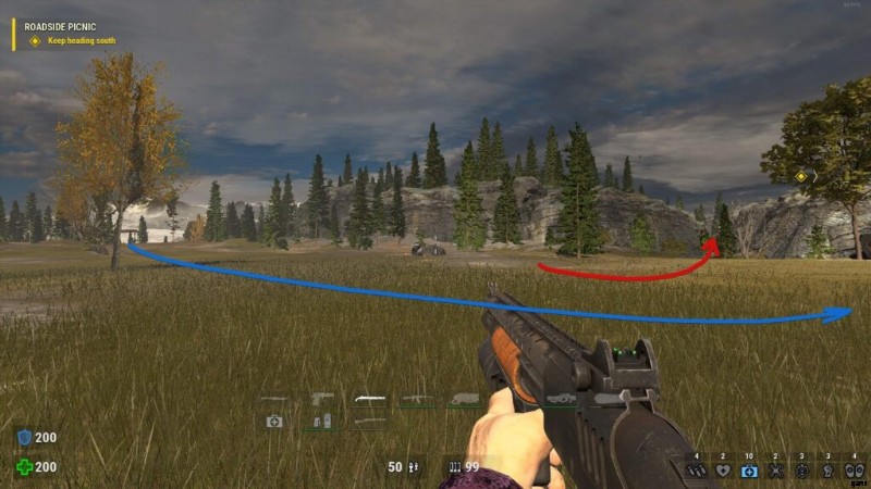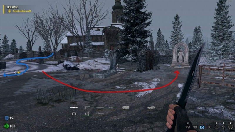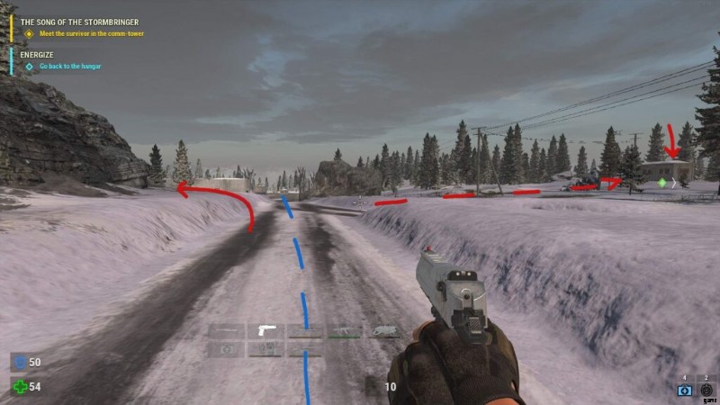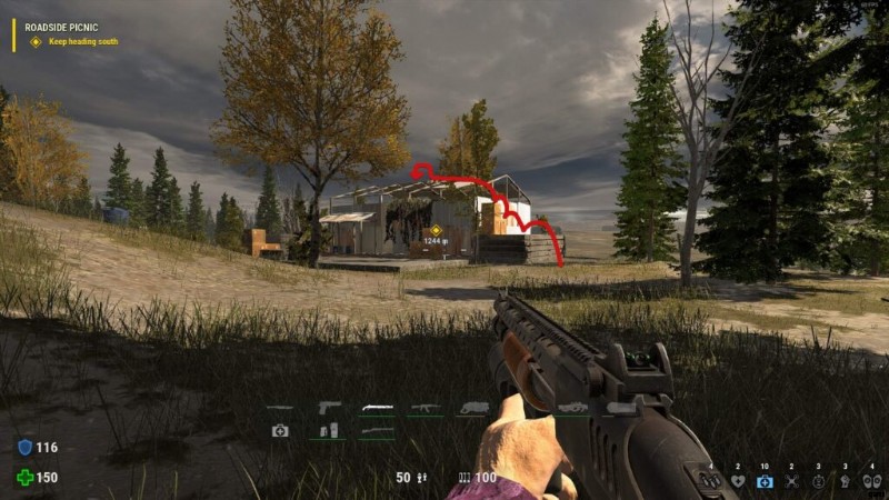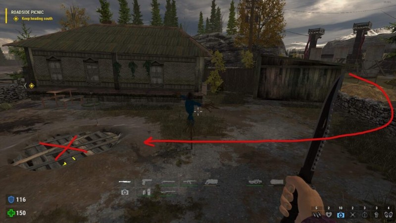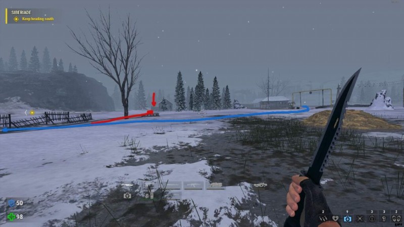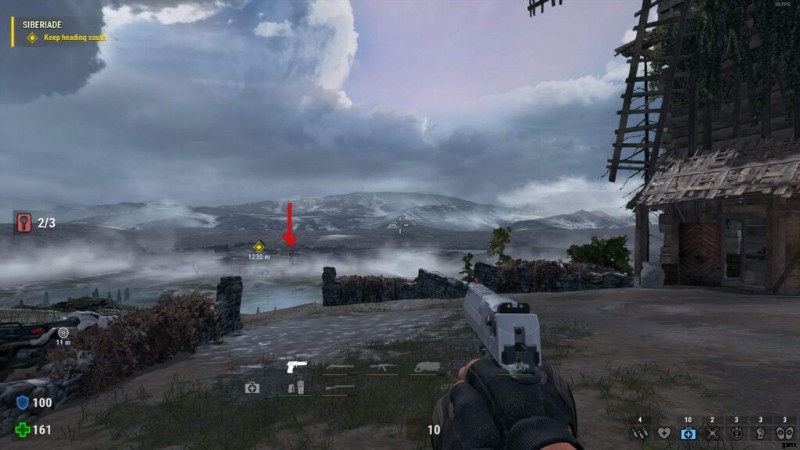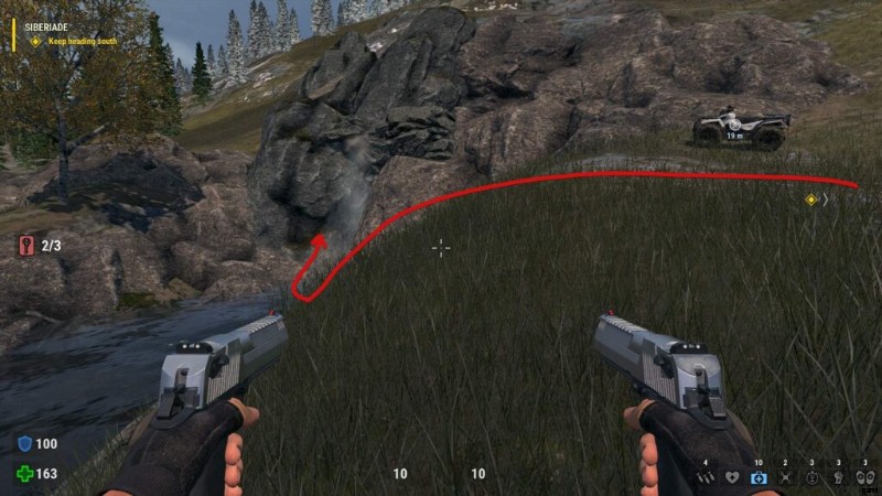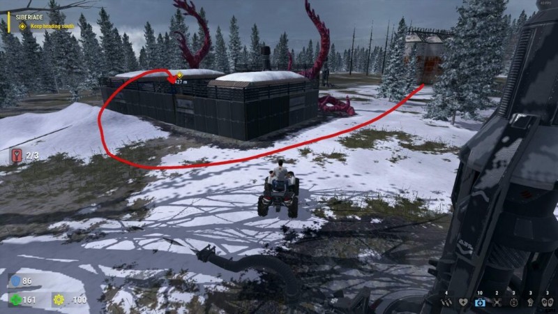 Back to the fork, a bit towards the objective by the right side you can find an empty field with a giant medkit. And of course it’s another trap.