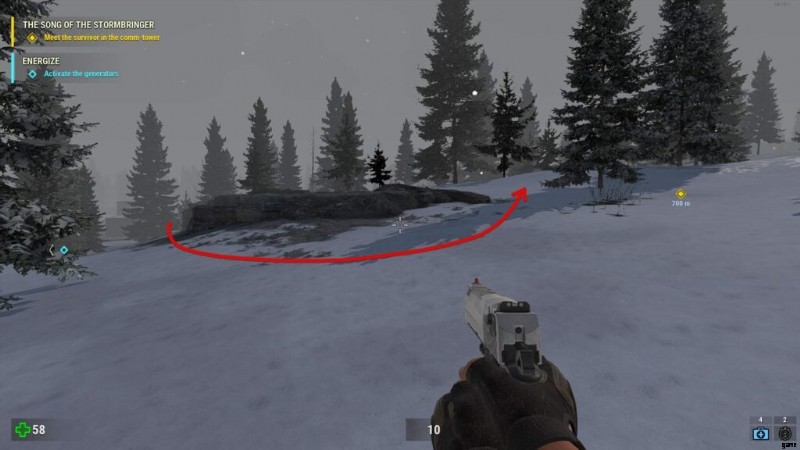 Finally, some good secret that was fun to find. Following the sawmill road you’ll discover the…sawmill, who could’ve thought. Jump on the tractor by the sawmill building, then on the roof, from the roof jump on the tank connected by the pipe to the silo thing, follow the pipe, climb the ladder and get your C4.