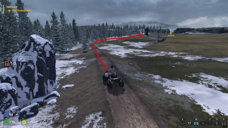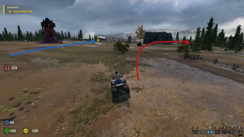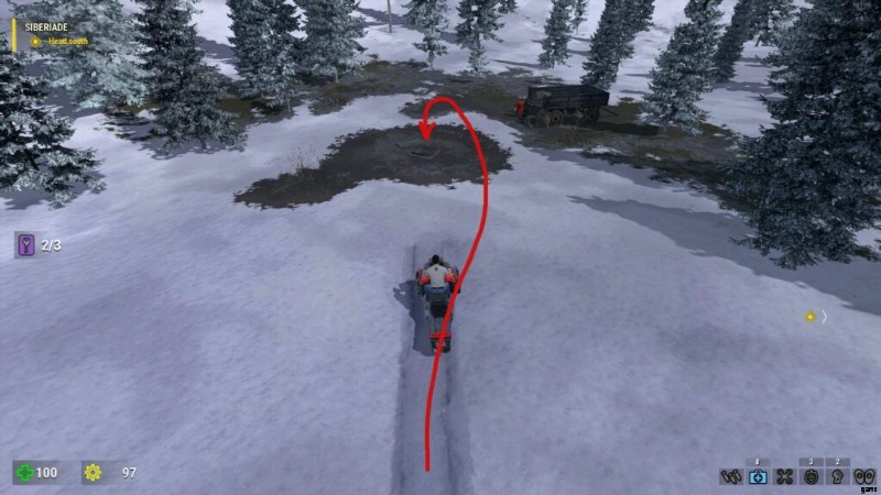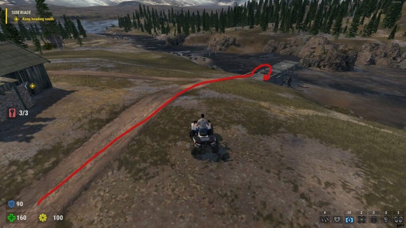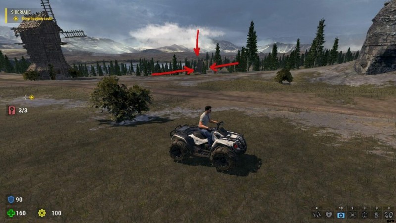 Backtrack to the crossroads (maybe do the “Hide and Seek” first) and take the last, sawmill, path. Right after crossroads there’s a secret on the left and you’ll pass by sawmill that has another secret. Ride until you make a hard right turn. By the left there’s another secret and by the right is last outpost with a key. Following the same road will lead you back to oil pumps and the area exit with your prize.