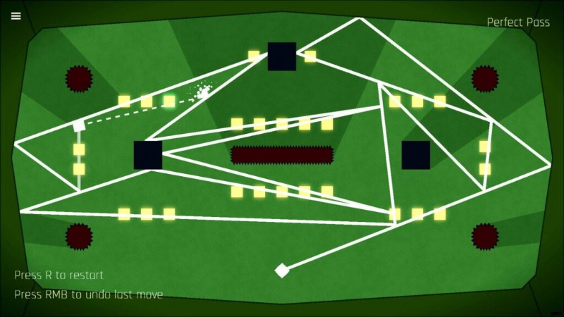 - 「パーフェクト パス」を獲得するには、すべてのショットで少なくとも 1 枚のコイン (黄色の四角形) を集めます。
