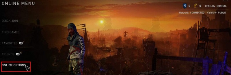 まず、一時停止画面でオンライン メニューに移動してクリックします。
