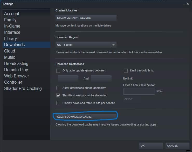 - 最後に、ダウンロード キャッシュをクリアします。この手順の後、ログアウトされ、ログインする必要があります。