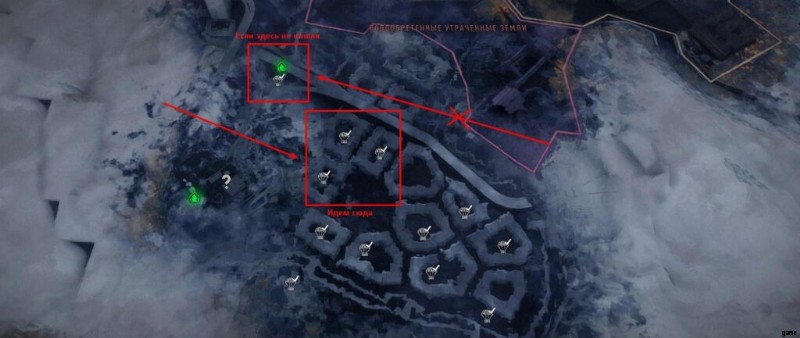 次に、浸水した都市に到達するまでマップの一番下に移動します。