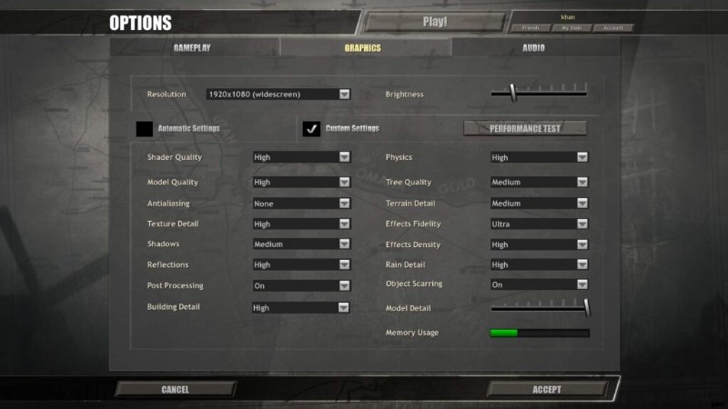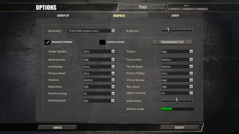 Shader Quality と Texture Detail を Ultra から High に変更しました: