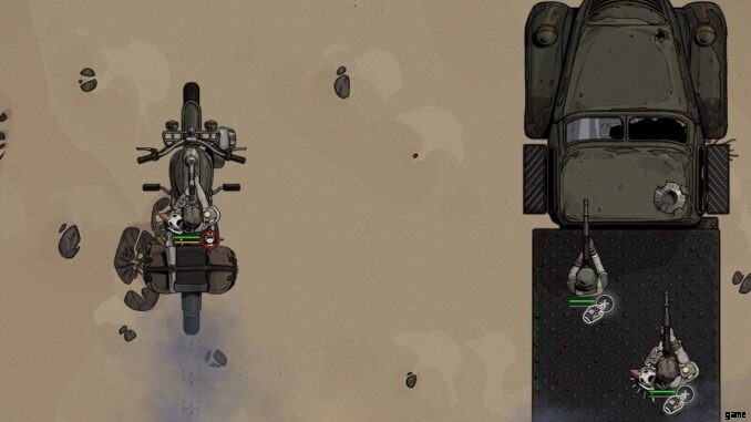 The basic truck will accommodate two fighters and one vehicle weapon, which can later go up to four fighters and four weapons. Unfortunately, since the enemy vehicle will get stronger over time, starting with motorcycles, later trucks, ATVs up to a fully equipped main battle tank before the final boss, you need to stay up to date with your equipment. In addition to the loadout, the truck can also get vehicle parts like wheels or armor fitted on it.