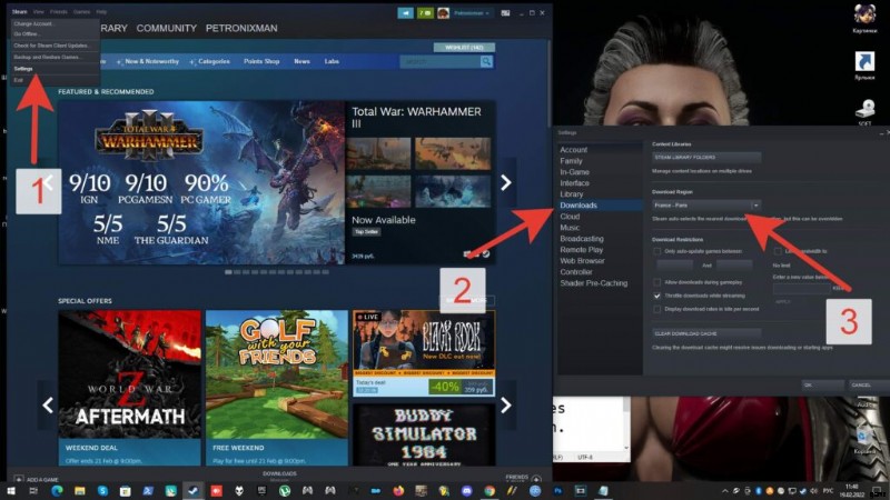 Steam アプリで [Steam] -> [設定] -> [ダウンロード] に移動し、適切なプレイヤー ベースを持つことができると思われるいくつかのダウンロード地域を選択してみてください。