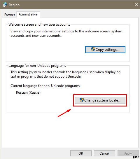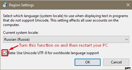 - システム ロケールの変更 -> ベータ版:Unicode 機能をオンにする必要があります。