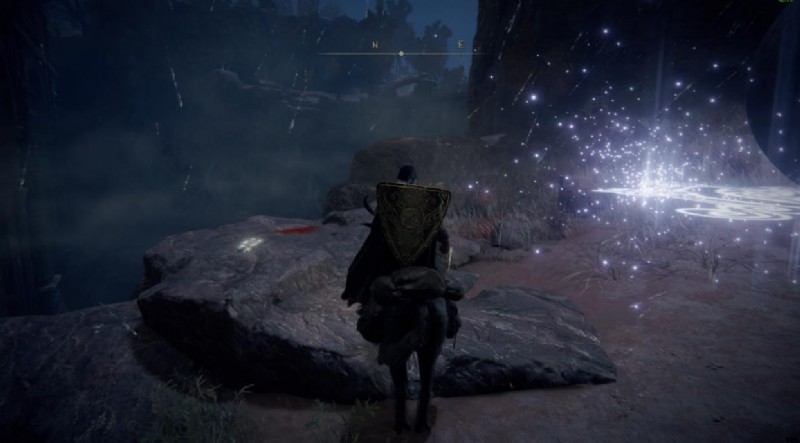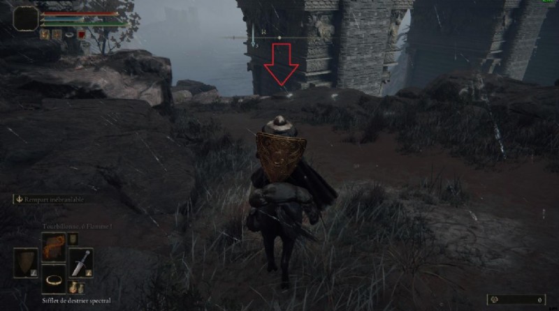 身を置いたとき、おそらく呪文を唱える音に似た音が聞こえたでしょう。岩が現れて、あなたを追ってきてあなたをぶつけようとします。近づいてきたら、上に示した場所でじっと待ってから、乗騎のスプリントを使用して、来た方向に前方にジャンプします。