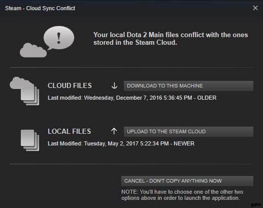 すべてのファイルを削除したら、Steam を再起動します。ガイドの最初のステップでチェックを外すように指示した「クラウド保存」ボックスにチェックを入れます。その後、ゲームを開始します。すべてを正しく行うと、下の図のようなウィンドウが表示されます (ただし、ゲームは Hero's Hour と呼ばれ、日付は正しく一致します):