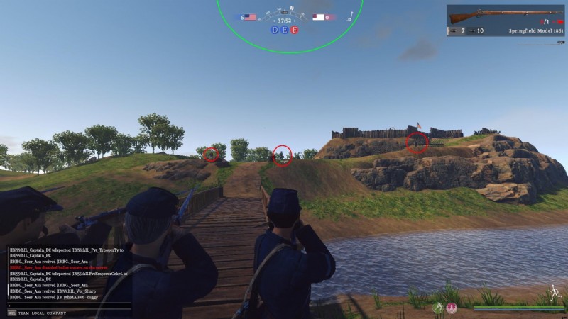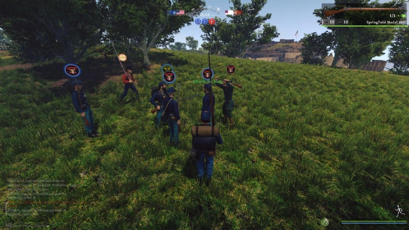 遠くにいる人が味方なのか敵なのか分からない場合は、頭上にあるバナーを探してください。彼らが持っている場合:それは友好的です.バナーが見えない場合は、ユニフォームの色を確認してください。青は連合、灰色は連合です。