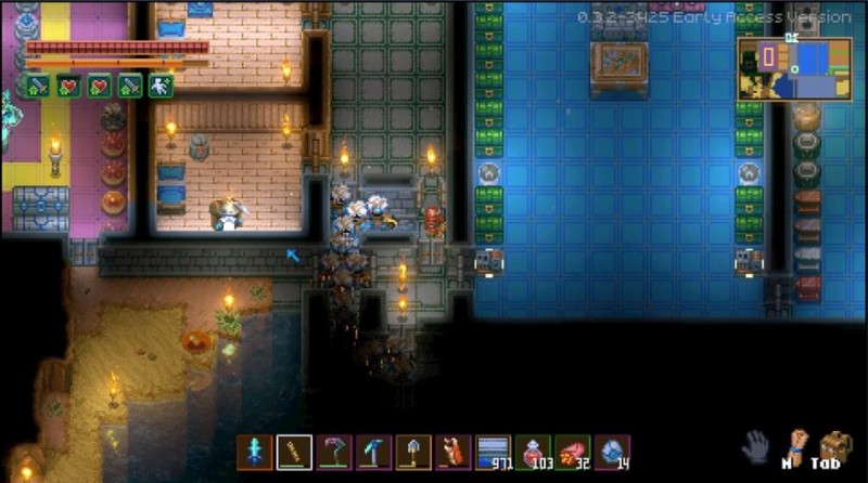 最終的にはこの部屋をもっと大きくして、床全体をスライムの床とベルトコンベアで覆い、バーごとの使用量が増えるため、小さな自動キルエリアを設けるかもしれません. (クラフト中のスキルツリーの特典を最大限に活用した場合、鉄1個につき10個、緋色1個)さらに、ドロップを拾うために走り回る必要がなくなりました。おそらく、私はこの部屋を出て、数画面以上離れた場所に別のスライム ファームを建設するでしょう.