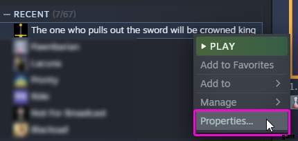 Steam の「ライブラリ」でゲームを右クリックし、「プロパティ」を選択します。