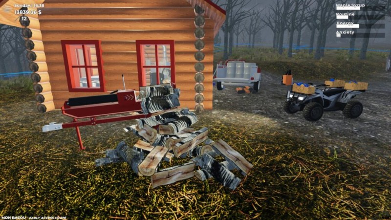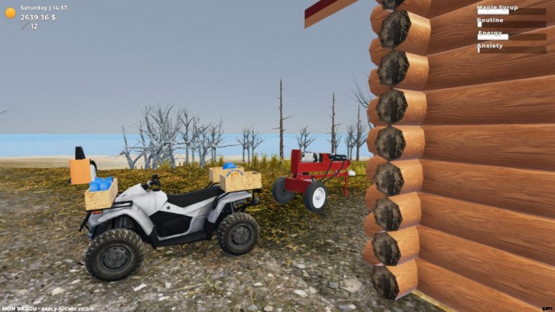 シロップを実行している間にこのエリアから丸太を移動する場合は、シュガー シャックで実行する前に 4 ~ 5 個の丸太をスプリッターに移動し、温度をチェックして効率的に実行し続けることができます。