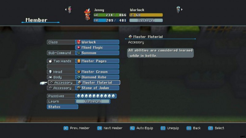 ボスが死ぬと、彼は「マスター マテリアル」と呼ばれる戦利品をドロップします。これは、2 つのクラスのすべての学習可能なスキルを、戦闘中に既に学習したものとして扱うアクセサリーです。また、近くに浮石の上にダイヤモンドの鉱脈が散らばっているので、それらをつかんで外に出ましょう。