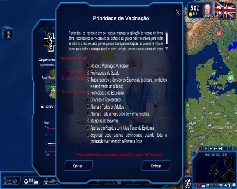 - ワクチンの最大量。 75%が中国のワクチンであっても、4つの生産者すべてでそれらを取得してみてください.国はワクチンの供給なしで始まるため、これはワクチン接種を開始するために重要です (これは真実ではなく、別のゲームは失敗します)。