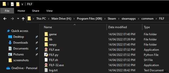 上の画像に示すように、Steam でゲームを右クリックし、[管理] にカーソルを合わせると、[ローカル ファイルの参照] というオプションが表示されます。これにより、以下に示すように、ゲームのローカル ファイルを含むファイル エクスプローラー タブが開きます。