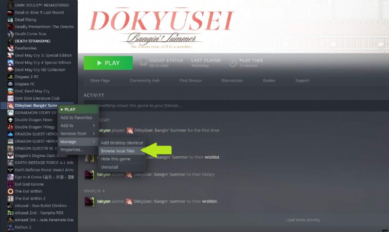 <オール>ゲームのフォルダのルートにアクセスする最も簡単な方法は、ライブラリでゲームを右クリック> [管理]> [ローカル ファイルの参照] の順に選択することです
