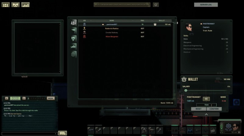 ご想像のとおり、入金すると、船の銀行にお金が入金されます。ただし、給与はもう少しユニークです。船長は、ミッションの完了後に獲得した金額に比例して一定の金額を乗組員に支払うシステムを設定できます。例;スティーブがミッションの報酬の 10% を獲得できるようにします。
