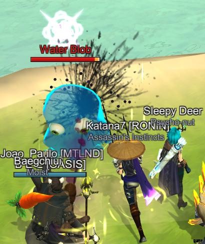 囲まれた海岸 - ミステリアス アイル タブからポイント レス アイルに移動し、水の塊と戦ってください。