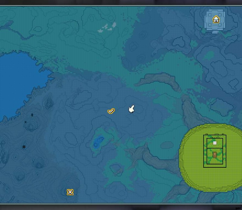ホームマーカーはネプチューン神社です。 X は開始位置であり、身長も設定します。チェックマークは、泳いで行く場所です。