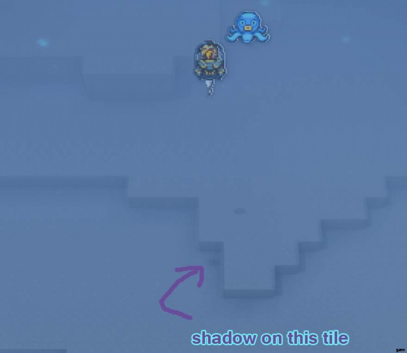 チェックマークまで斜め北東に向かいます。その方向に泳ぐと、Speedy Octopus がスポーンします。