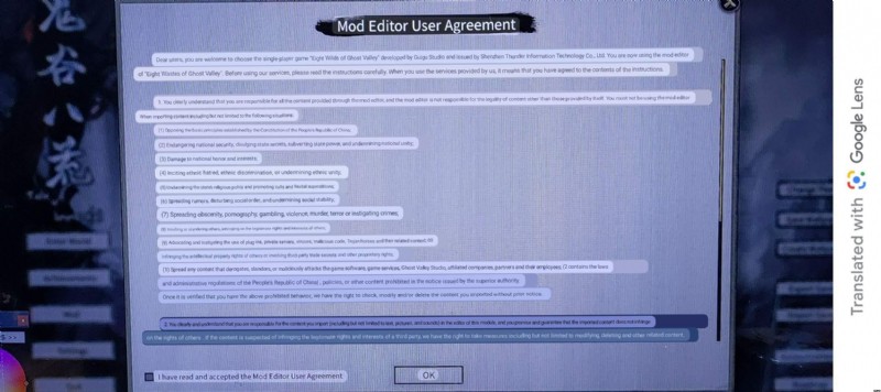 - 4. MOD には中国政府によってのみ許可されたコンテンツが含まれていることを理解し、同意します。
