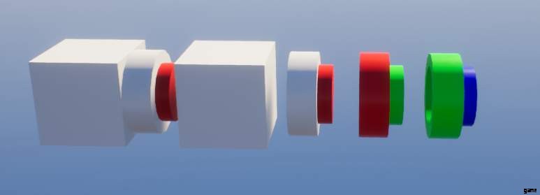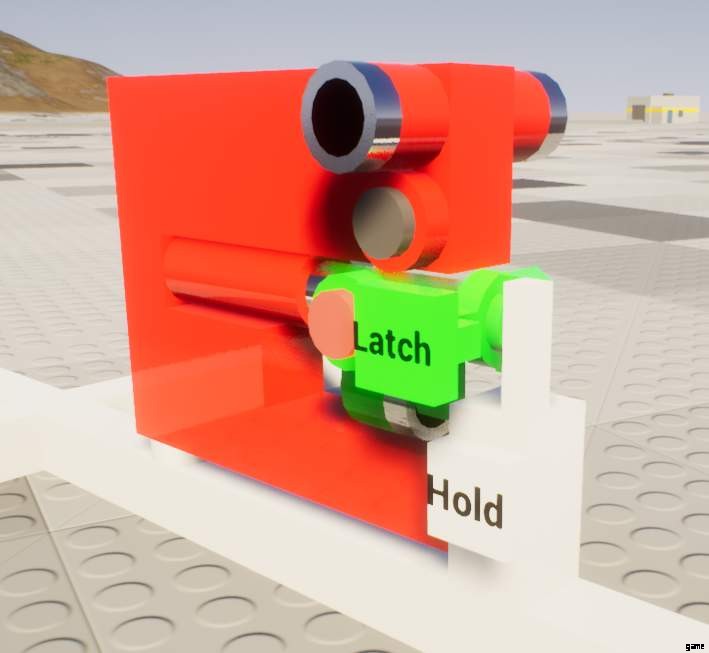 例:ドアのラッチ システムが必要な場合、ドアはレイヤー 1 のレンガで作られているため、レイヤー 2 のレンガでラッチを作成し、キープ (ラッチを保持する部分) を作成します。層 0 または層 2 ブリックの外)。