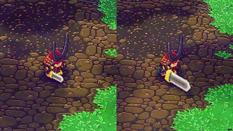 - 展開: 武器が成長し、攻撃範囲が広がります。武器のサイズは、設定された数に応じて段階的に増加します。銃弾なども大きくなります。画像は通常サイズと拡大時の剣を示しています。