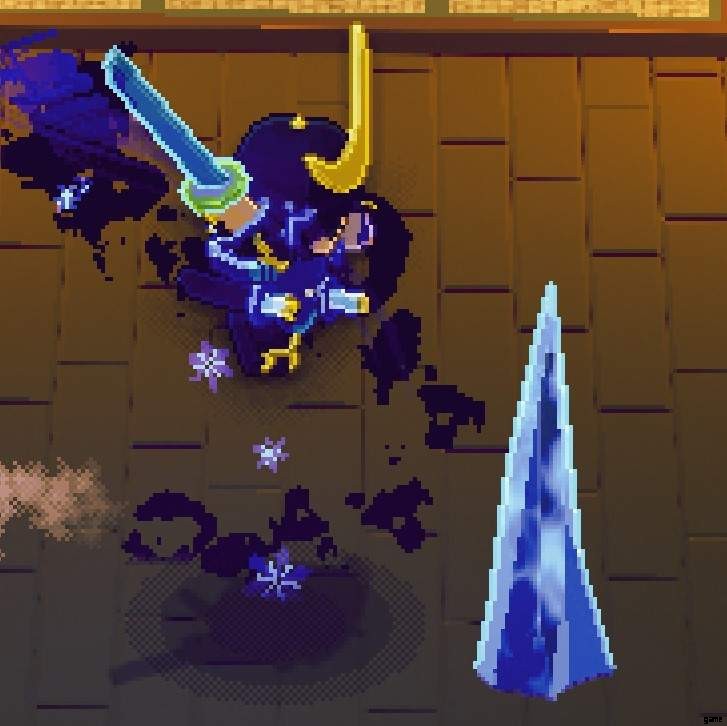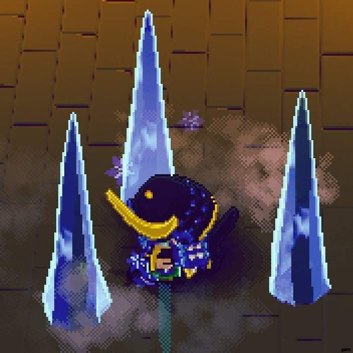 - プレイヤーは剣を地面に突き刺し、氷の柱を作り、自分自身を凍らせます、バカ。