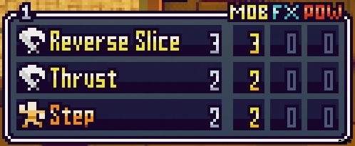 - ソード:プレイヤーは全力で前方に突進し、次に、本当に、本当に、激しく突きます。 Wave は範囲を広げることができます。
