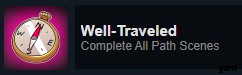 ここから、ゲーム内のパネルの大部分ができました。いくつか不足しているため、残りを取得するためにすぐにクリーンアップを行います。次に、パスを計画します。フラグ付きの実績が 3 つあることに気付いたかもしれません。放浪者、従者、そしてリーダー。また、パネルを見ると、パスの下部にあるセクションがオプションであることに気付いたかもしれません。次のビットに到達するには、設定されたパスを正確にたどる必要があります。悲しいことに、パス B は完了しましたが、パス A と C には欠けている部分がいくつかあります。つまり、これらのセクションに移動し、それらの選択肢を埋めてから、パスを正確に下る選択肢を見つけ出す必要があります。ありがたいことに、パスの左側にあるシーン ボタンを使用することで、必要なシーンを正確に把握できます。