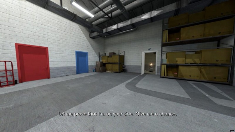 - 5: 2 つのドアの右側にあるドアを選択し、エレベーターの前の左側にある貨物室 (エレベーターのある非常に広い部屋) まで歩いてください。