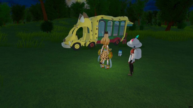かばんを呼び、バスでラッキービーストに近づく。タッチするとかばんとラッキービーストが話しかけます。その後、ビッグドッグと戦います。