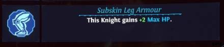 - サブスキン レッグ アーマー – 最大 HP +2 を恒久的に獲得