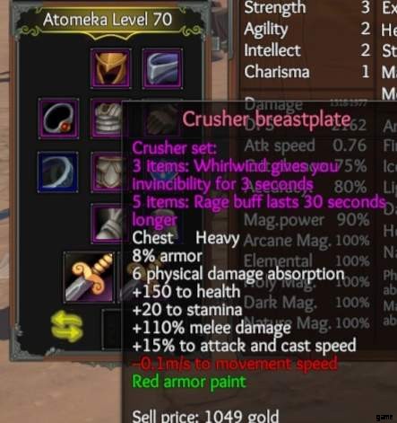 クラッシャー アーマーと、スキル ツリーの凶暴性タブの下にあるワールウィンド アビリティを 3 つ以上持っている。これは近接ダメージに比例する近接能力であるため、近接を強化する装備が必要になります。クラッシャー アーマーを 3 つ装備している場合、ワールウィンドを使用すると 3 秒間無敵になります。