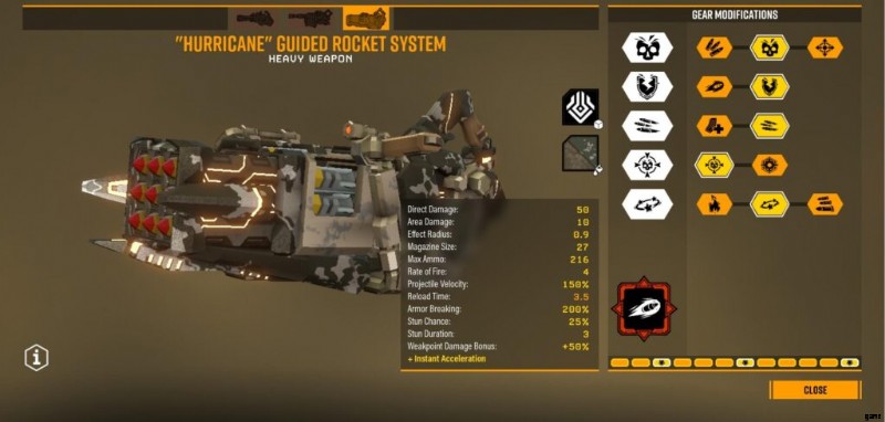 Mactera Hunter (“Hurricane” Guided Rocket System + BRT7 Burst Fire Gun)