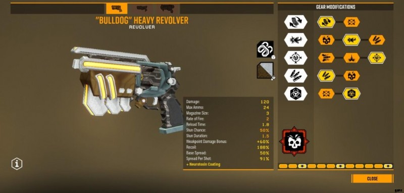 もちろん、このブルドッグはオーバークロックなしでは完成しません。そして、エレファント ラウンドよりも、この悪い少年の噛みつきを強調するのに最適な不安定なオーバークロックはありますか? 1 つのチャンバーに 3 発しか装填できず、リロード時間が長く、反動がひどくて 1 発で人間の手首が壊れるという代償を払って、ダメージは非常に高くなります!