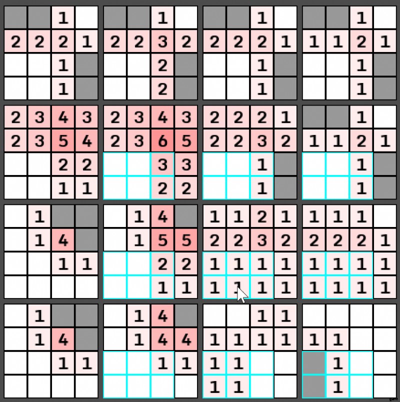 - 値がない場合、それに接触している他のすべてのタイルが表示されます。