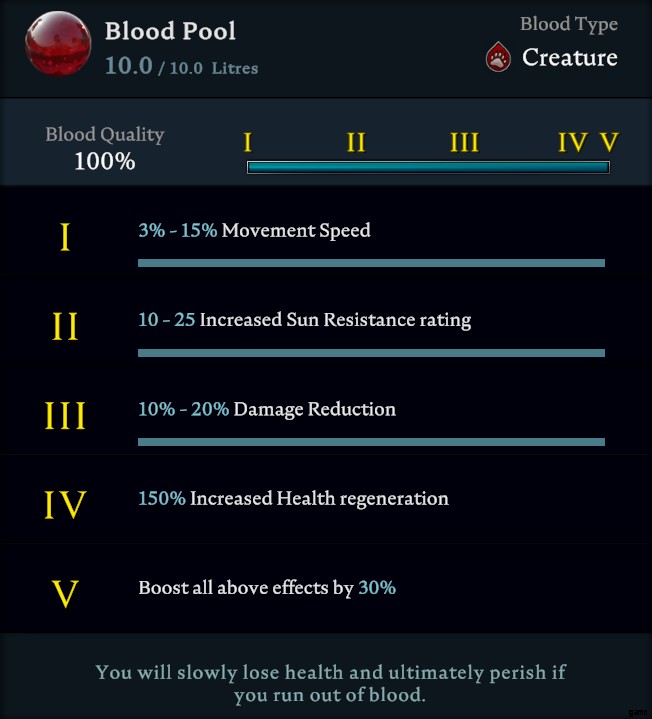 Blood Hunger: Allow you to check blood quality and type of nearby enemies.