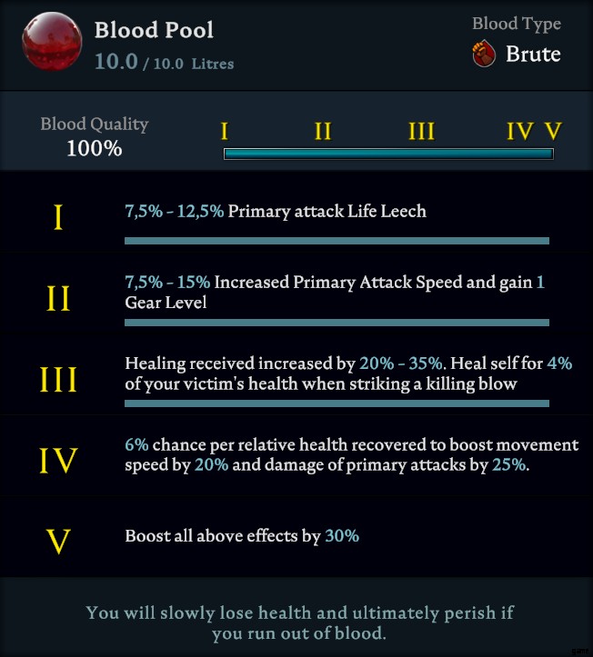 Blood Mend: Consume 0,2 liter blood per second to recover 4% of max HP.