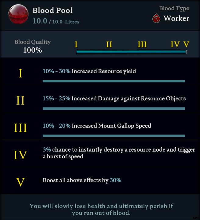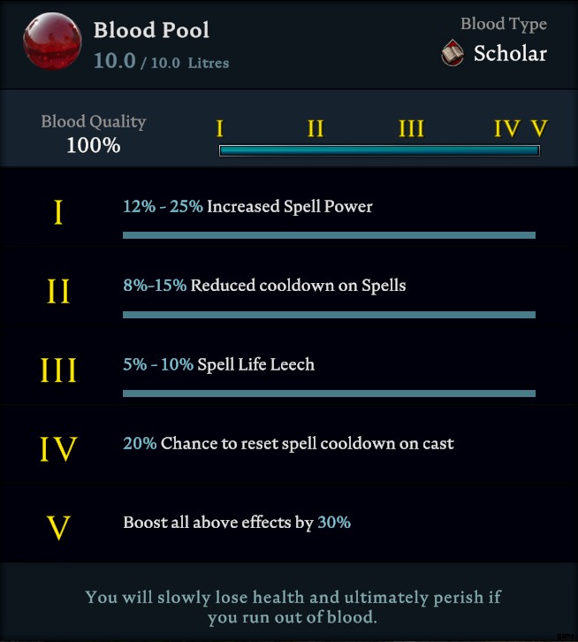 ゲーム内で入手できる 6 種類の血液があり、それぞれに独自のバフがあります。