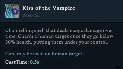 - 吸血鬼のキスを唱える。これはターゲットから HP を消耗させ、HP が 30% を下回ると、人間は誘惑されてあなたについてきます。 (最初にターゲットを攻撃して HP を下げてから、キスを使用できます)。