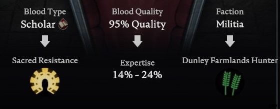 Type と % of quality を取得します。品質が高いほど、その血液型でより多くのバフが得られます。